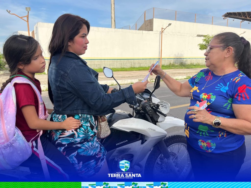 Com o objetivo de ampliar o conhecimento da população e fortalecer a inclusão social, a Prefeitura de Terra Santa realizou, na tarde desta segunda-feira (06), uma blitz educativa voltada à conscientização sobre o “Transtorno do Espectro Autista” (TEA). A ação aconteceu na travessa São Francisco e mobilizou educadores, agentes públicos e instituições de apoio em uma iniciativa de grande relevância social.