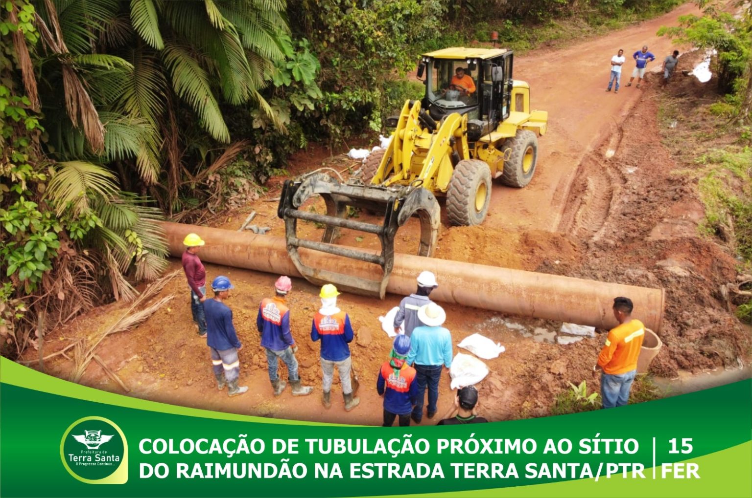 Na data de 15 de fevereiro a Prefeitura de Terra Santa, prefeito Doca Albuquerque, através da Secretaria de Transporte, secretário Valdir Matheus, continua realizando os serviços de melhorias, desta vez foi a colocação de uma tubulação na estrada que liga Terra Santa a Porto Trombetas no trecho próximo ao Raimundão, assim como, foi colocado material piçarra no trecho próximo ao Sítio do Churrasco.
