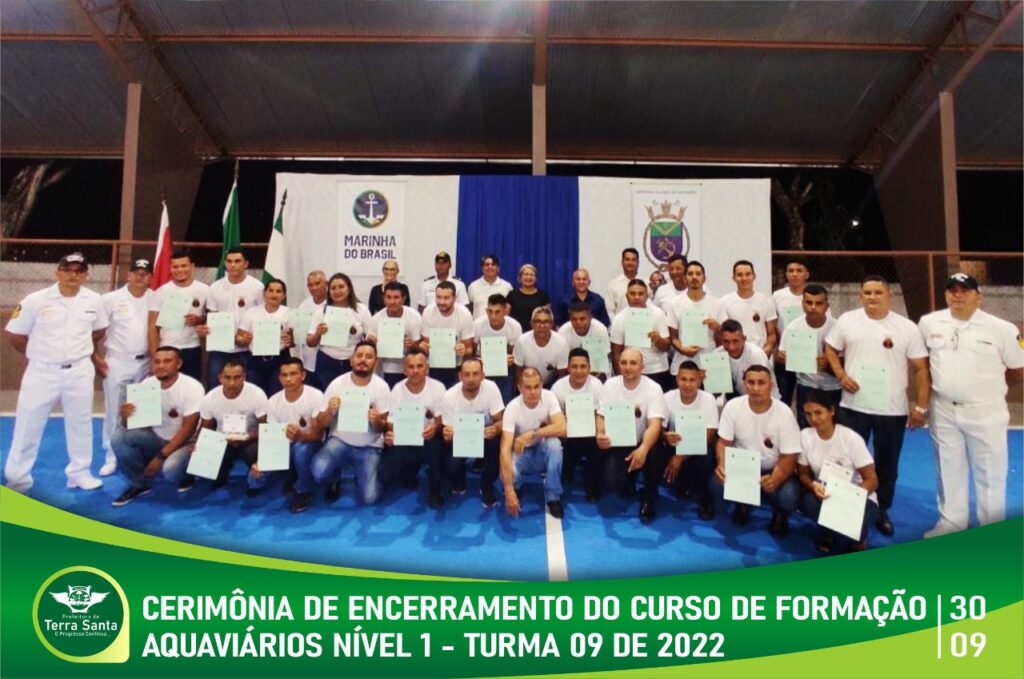 No período de 26 a 30 de setembro de 2022, 4 militares da Capitania Fluvial realizaram o Curso de Formação de Aquaviários – Marinheiro Fluvial Auxiliar de Convés e Máquinas (CFAQ-MAF/MMA), no Município de Terra Santa-PA, em parceria com a Prefeitura de Terra Santa através da Secretaria de Educação.