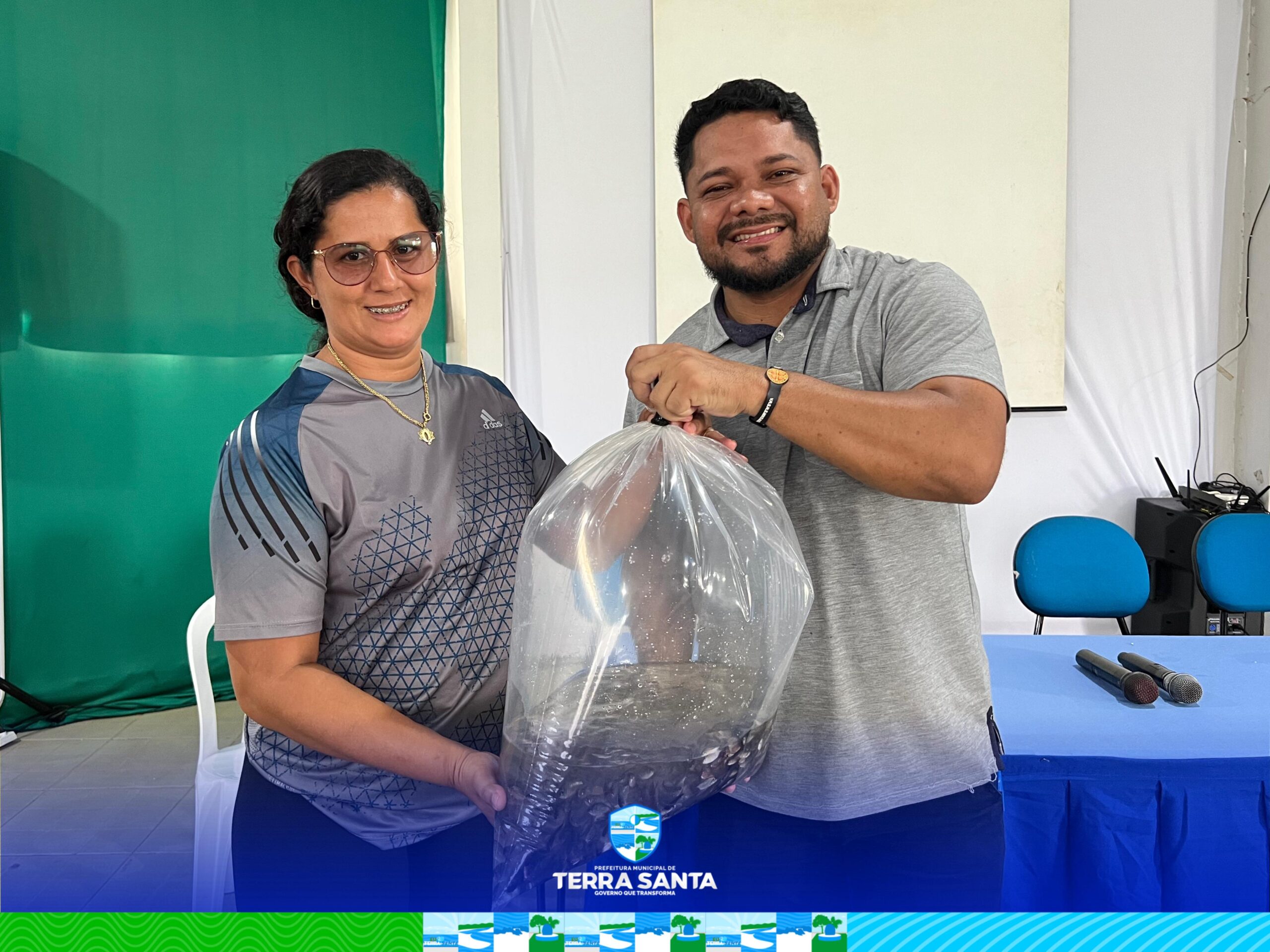 A Prefeitura de Terra Santa segue investindo no desenvolvimento econômico sustentável e no fortalecimento da produção local. Na manhã da última quinta-feira, 5 de junho, foi realizada a entrega de aproximadamente 8 mil alevinos a piscicultores do município. A ação, coordenada pelas Secretarias Municipais de Agricultura, Educação e Meio Ambiente, ocorreu no auditório da escola municipal Edmara Cunha e reuniu autoridades, produtores e comunidade escolar.Estiveram presentes no evento o prefeito Edson Siqueira, vice-prefeito e secretário de Interior Lucivaldo Ribeiro, secretário de Governo Miguel Neto, secretário de Turismo Rene William Barbosa, secretário de Desporto e Lazer Rennan Augusto, e a representante da Secretaria de Agricultura Daniela Teixeira. Também participaram os representantes da Fazenda Dona Anália, Ailton Carvalho e Joeldison Oliveira, o coordenador da escola no Campo, Gustavo Ferreira, além de professores e alunos da escola municipal Francisca Sousa Barbosa.